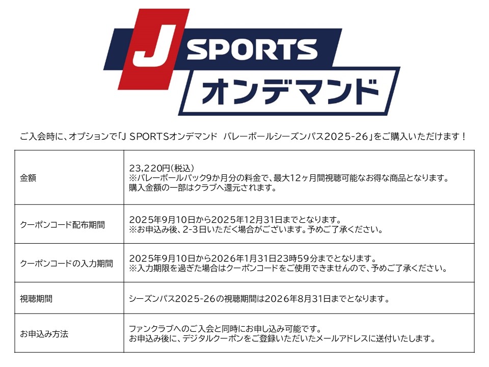 【オプション選択】 J SPORTSオンデマンド バレーボールシーズンパス2025-26