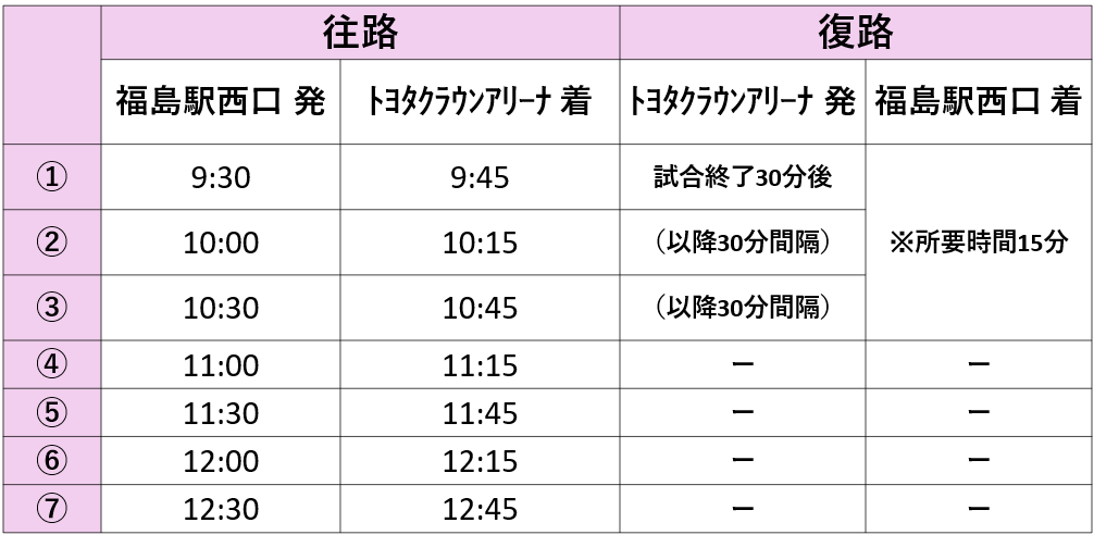 福島駅西口⇔福島トヨタクラウンアリーナ
