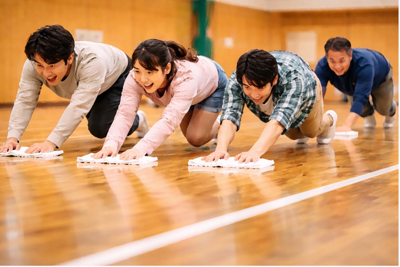 | 内容 | ハーフコートを雑巾がけで走り抜け、ゴールまでのスピードを競います。 |